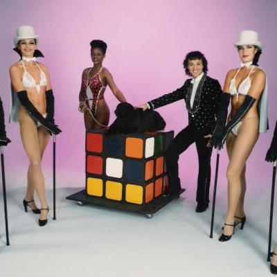 Gilles Weiss magicien avec danseuses et partenaires. Numéro International d'apparitions de colombes. Spectacles itinérants de grandes illusions